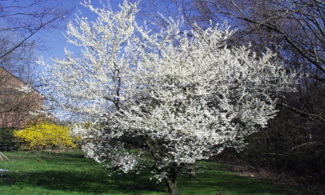 Die Mirabelle, auch als Gelbe Zwetschge bezeichnet ist eine Unterart der Pflaume Die Mirabelle wird von Laien oft mit der ihr in Größe und Gestalt ähnlich sehenden Kirschpflaume verwechselt. Diese hat aber eine glattere und (vor allem nach dem Kochen) säuerliche Haut, ist meist nicht steinlösend und blüht, im Gegensatz zur spätblühenden Mirabelle, sehr früh, fast als Erstes im Jahr.