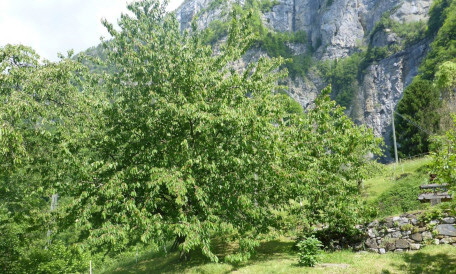 Das steile Gelände und der sonnige Südhang auf Perzelle 99 sind ein Ort, wo verschiedene Bäume und Pflanzen, die mit dem Klima auf 1575 M/ü/M im Einklang stehen, prächtig gedeihen oder sich zu behaupten versuchen.